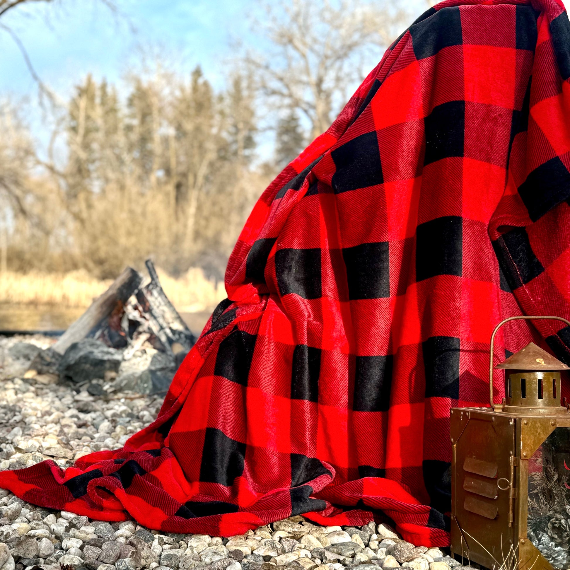 Elevate your adventures—and your downtime—with the SABE Plaid Red Fleece Adventure Blanket.