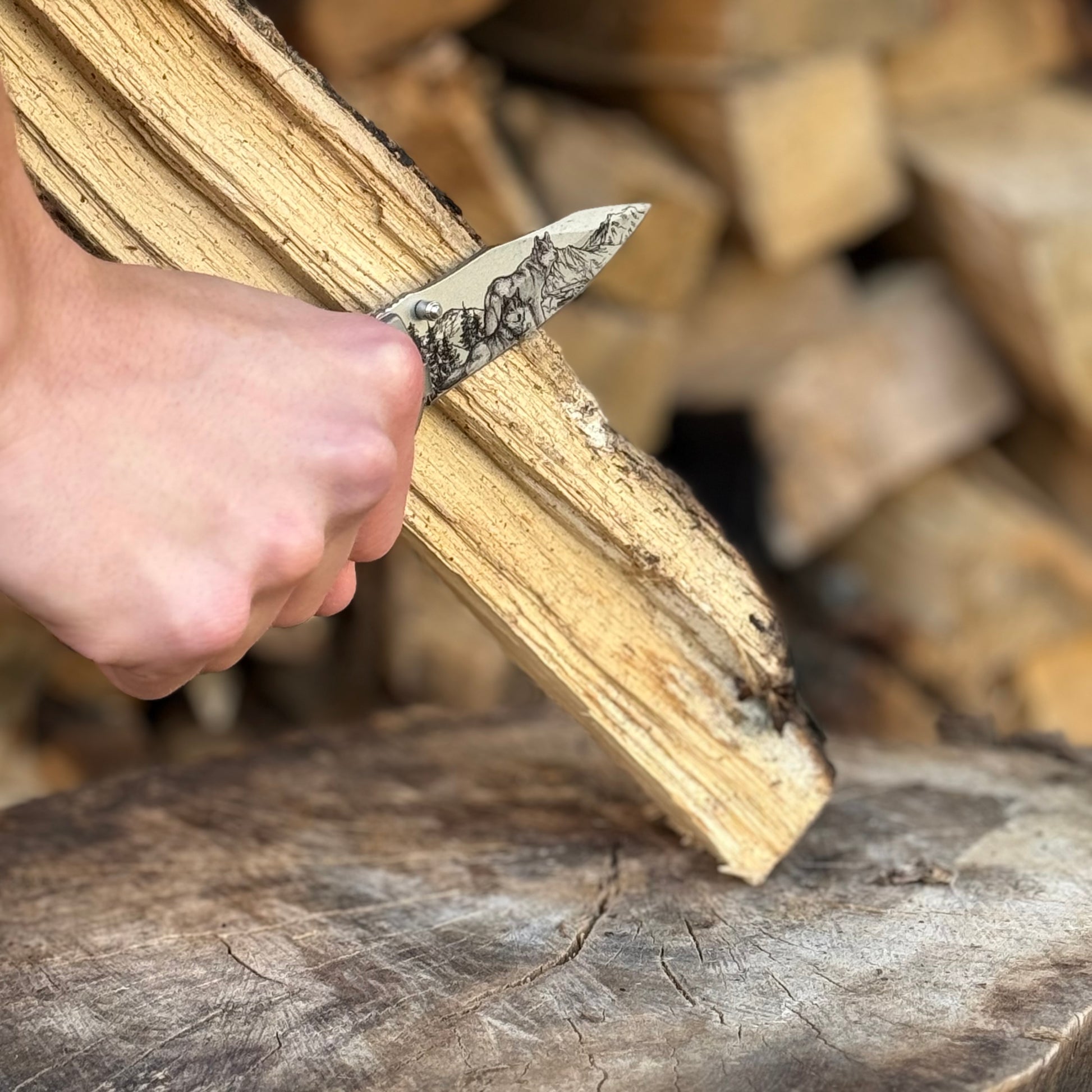The detailed wolf engraving on the blade adds a bold, symbolic edge — representing loyalty, resilience, and leadership. Paired with a sturdy, ergonomic handle and a smooth folding design, it’s a practical tool that looks as sharp as it performs.